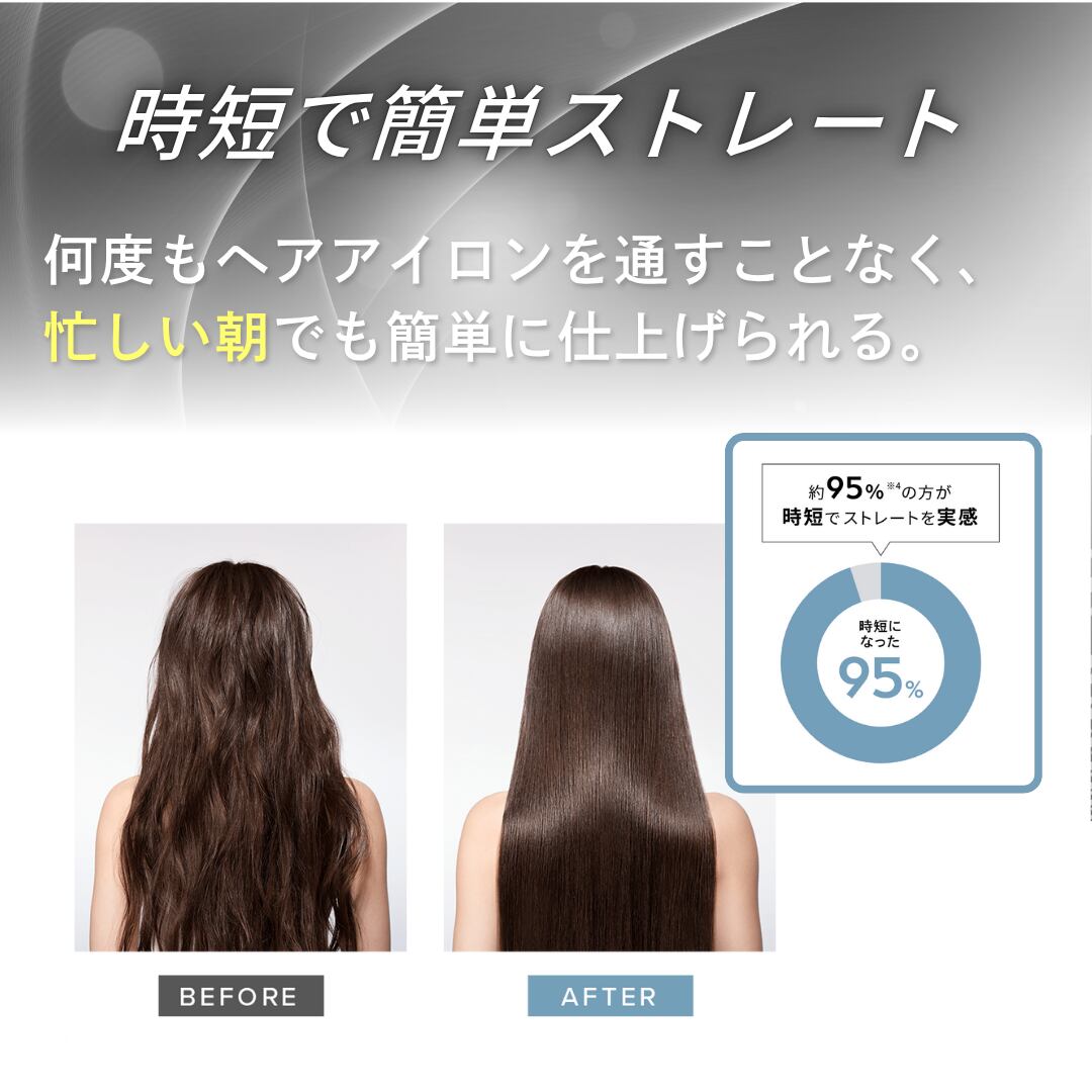髪のうねり・くせを整えつつ、しっとりとしたツヤ感を保ちます。
