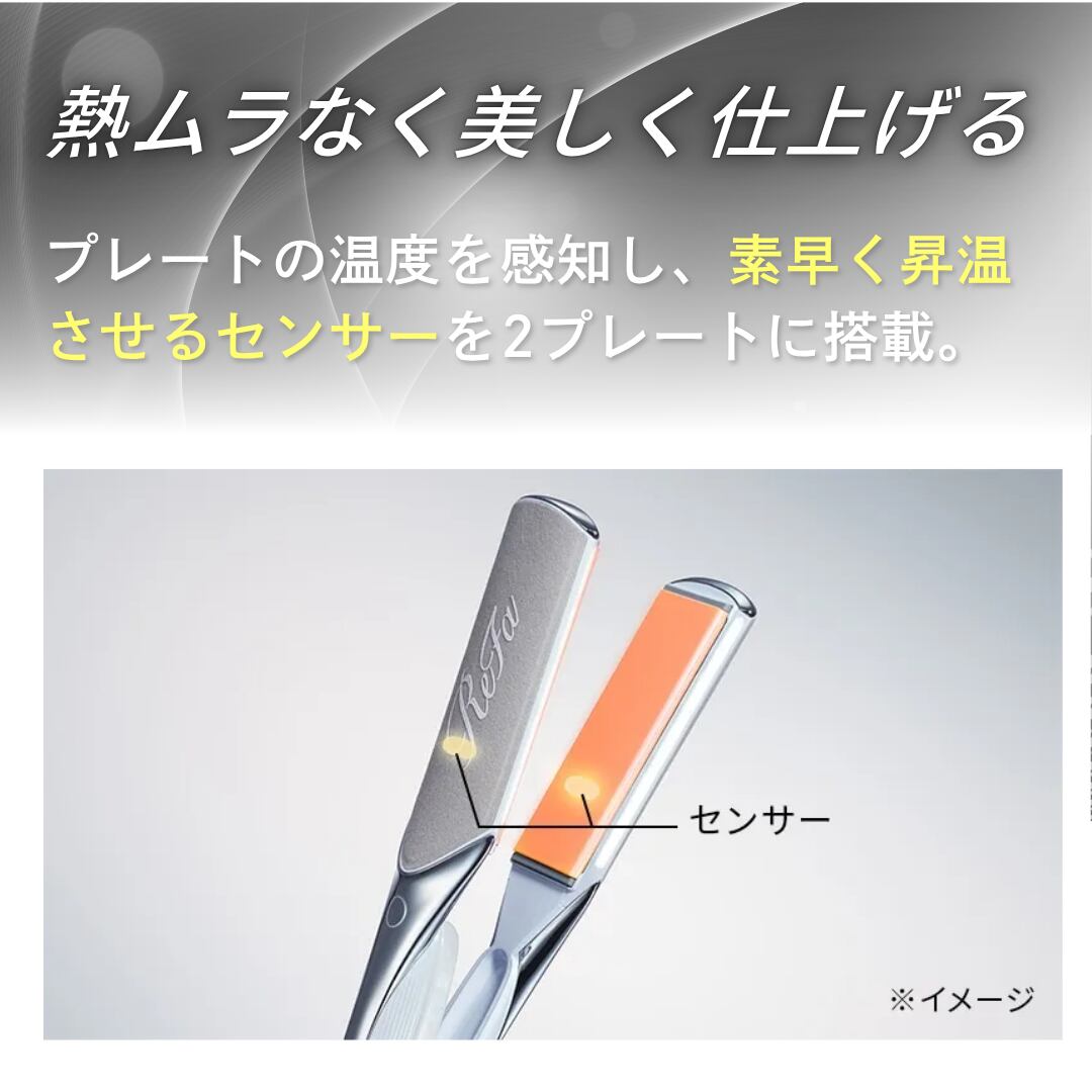 このストレートアイロンは、高性能セラミックプレートを搭載し、髪の水分を保持しながら滑らかな仕上がりを提供します。設定温度は170℃から230℃まで調整可能で、自分に合ったスタイリングを自在に楽しむことができます。また、独自の「ダブルセンサー技術」が熱を均一に分散させ、毛先までしっかりとケアします。